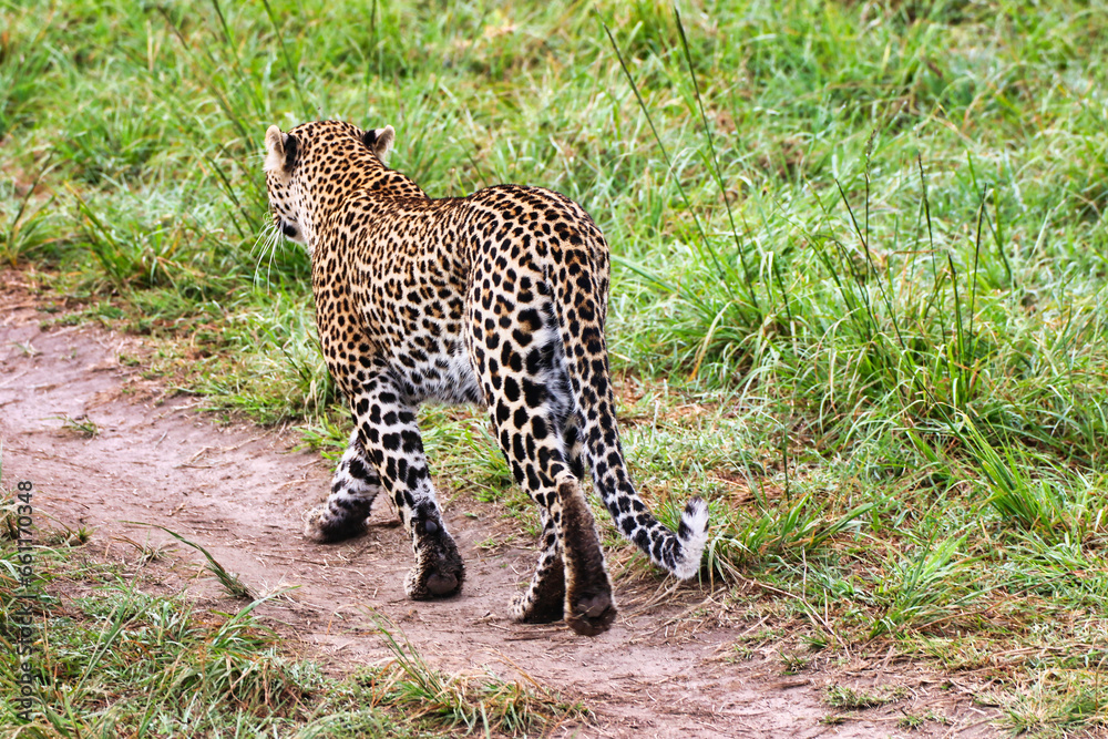 A Young Leopard on the safari trails in Maasai Mara game reserve, Kenya, Africa