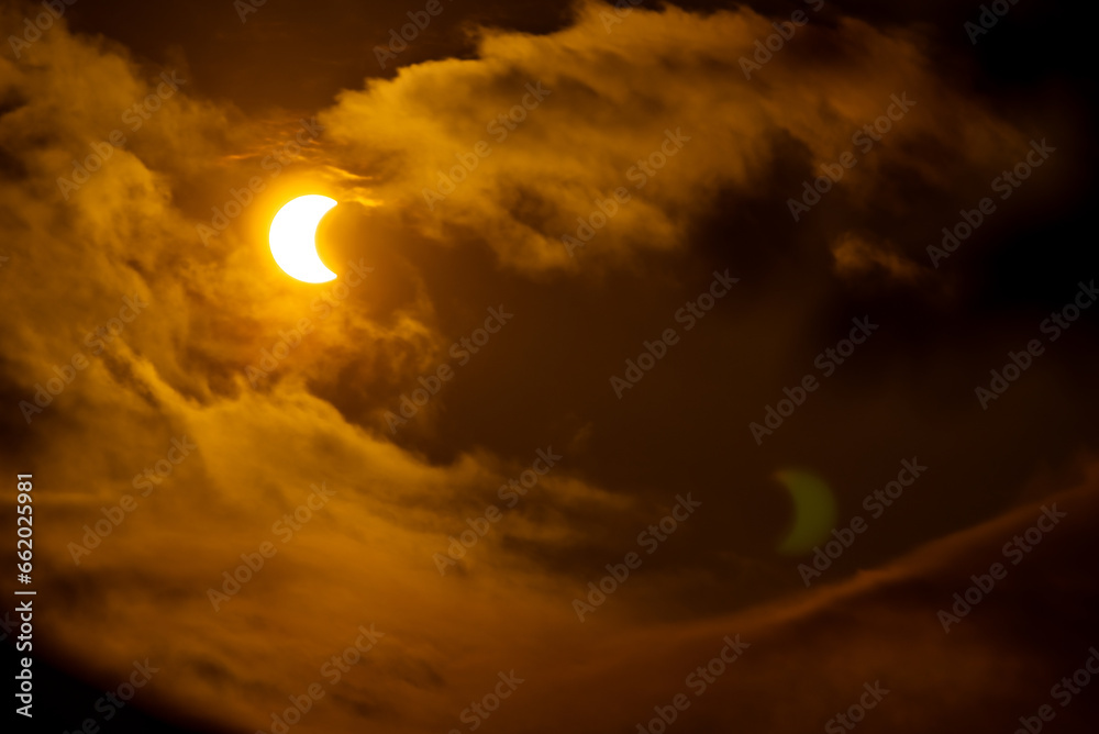 Ring eclipse, beautiful ring eclipse on October 14, 2023 seen from the city of Araras S.P. Brazil, partial view due to location.