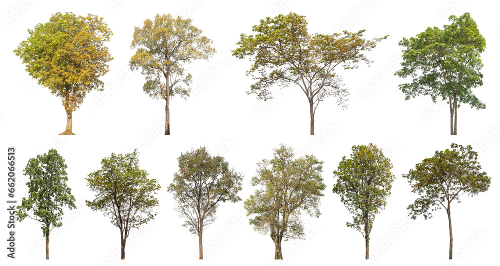 Collection of green trees isolated on transparent background. for easy selection of designs..