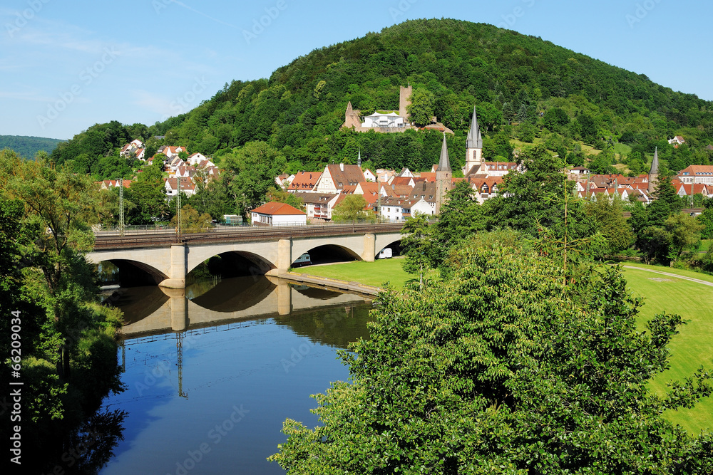 Gemünden am Main, Blick auf die Altstadt mit Scherenburg