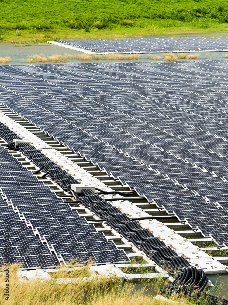 View of the floating Solar power system on the flood detention basin in Kaohsiung, Taiwan.