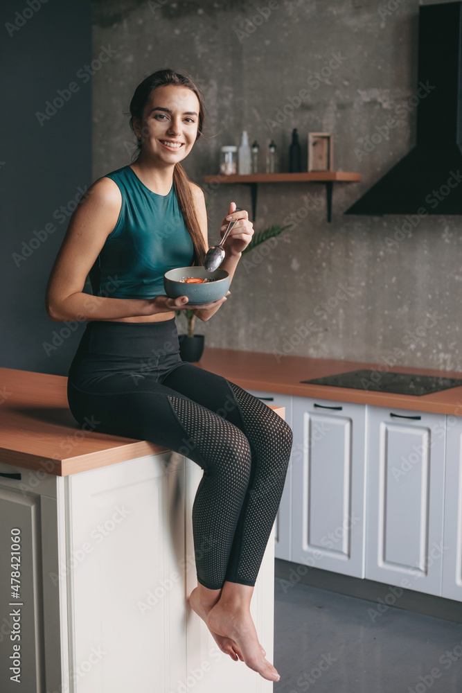 Toddler girl eating healthy vegetables and unhealthy french fries potatoes. Cute happy baby child taking food from parents dish in restaurant. Father eating in fast food restaurant with daughter
