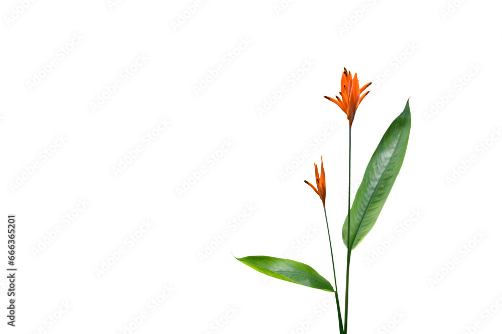 Close-up of Heliconia plant with yellow flowers isolated on transparent background png file.