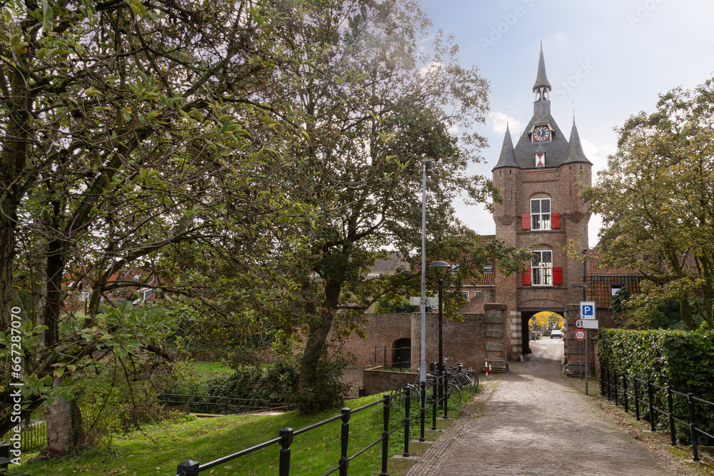 Medieval city gate - Lekpoort, in the center of the historic city of Vianen.