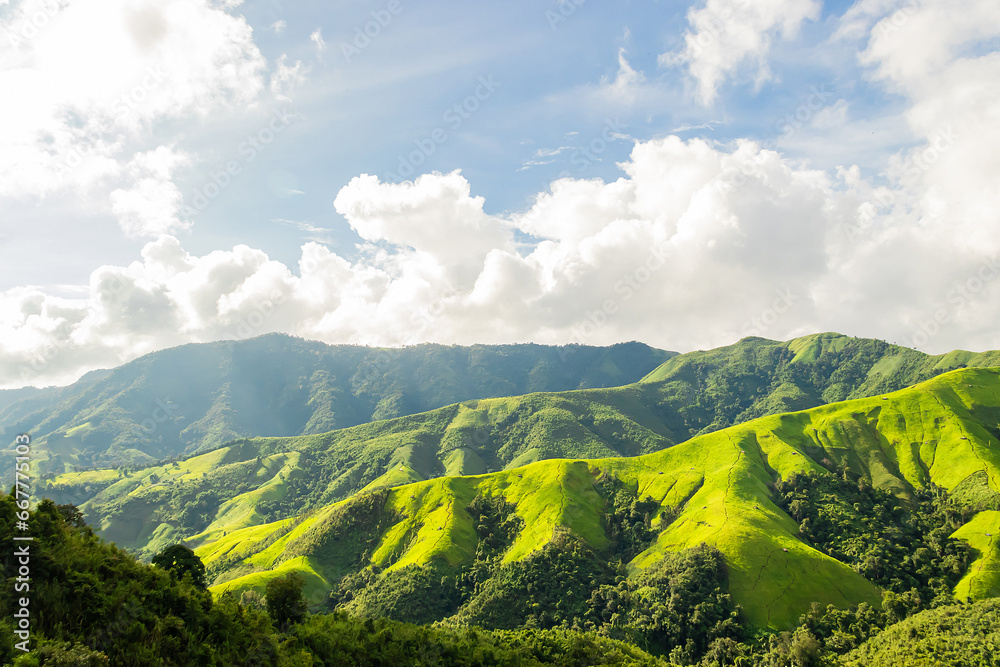 Beautiful sunrise over the mountain range at the east of Thailand.