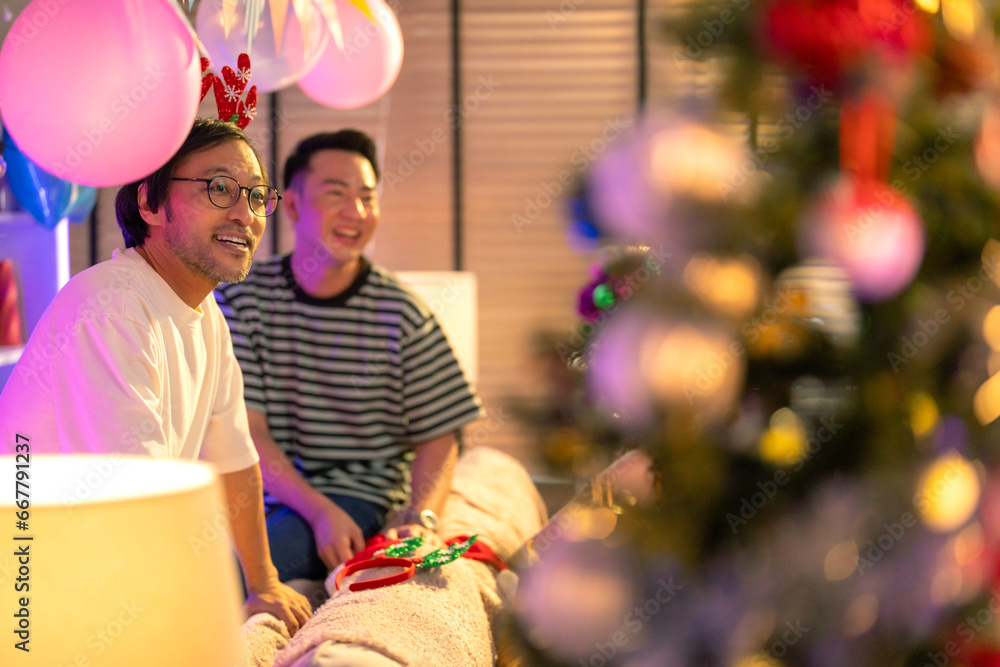 casual fun talk friend conversation group of cheerful party friend sit relax talking fun laugh cheerful on sofa in living room with party decorative house interior background