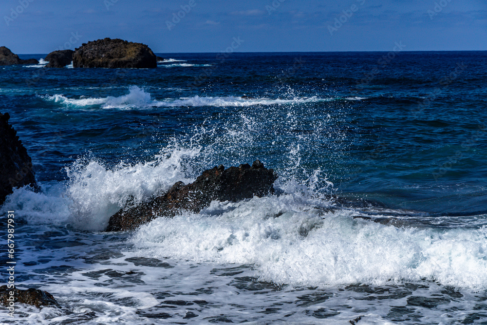 Rough waters of the Atlantic Ocean, dangerous waves for tourists in Tenerife