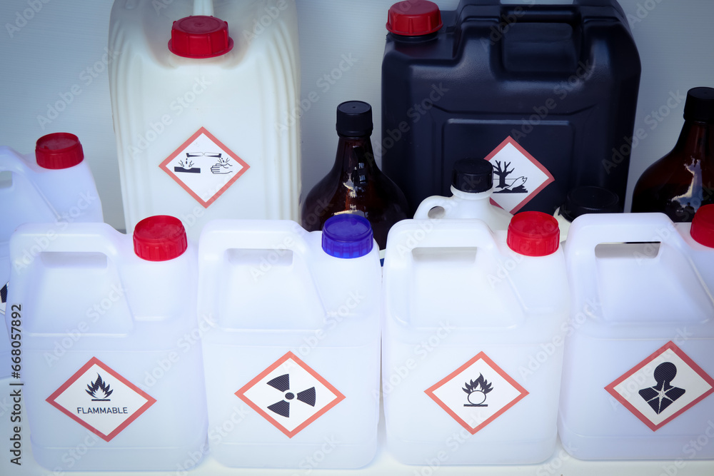 Warning symbol for chemical hazard on chemical container