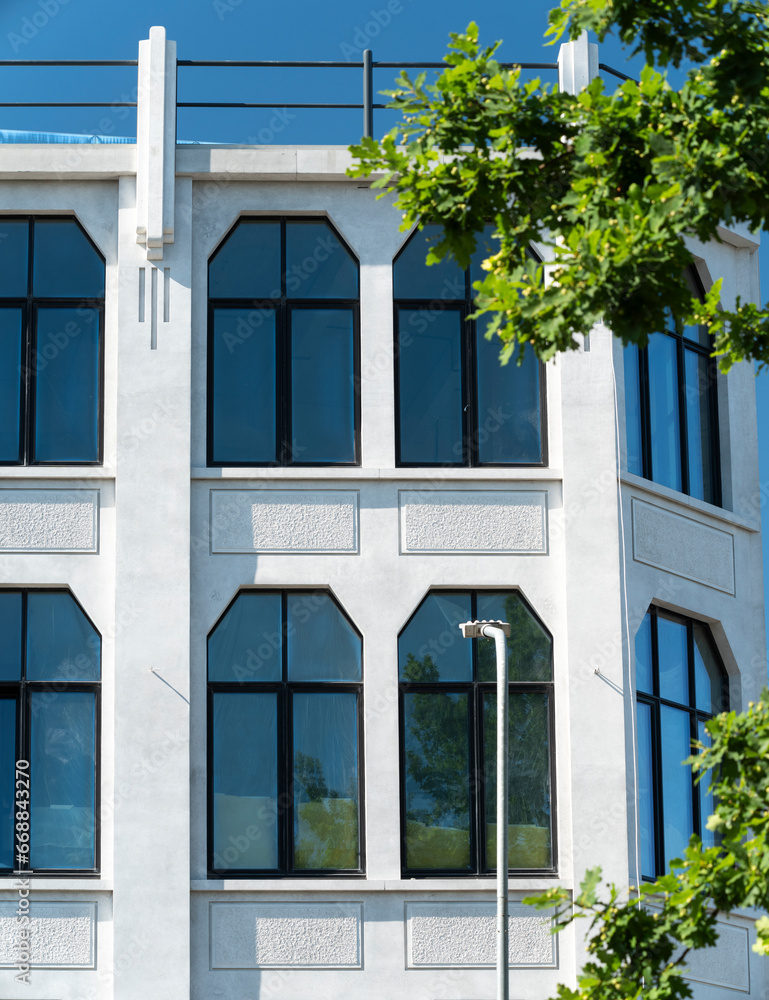 Hexagonal windows in an office building.