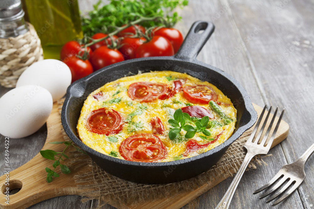 Omelet with vegetables and cheese. Frittata