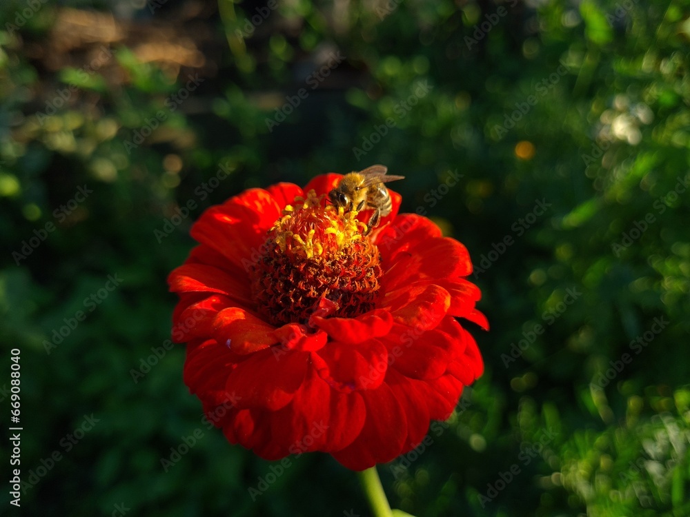 Red Yellow Zinnia in Full Bloom