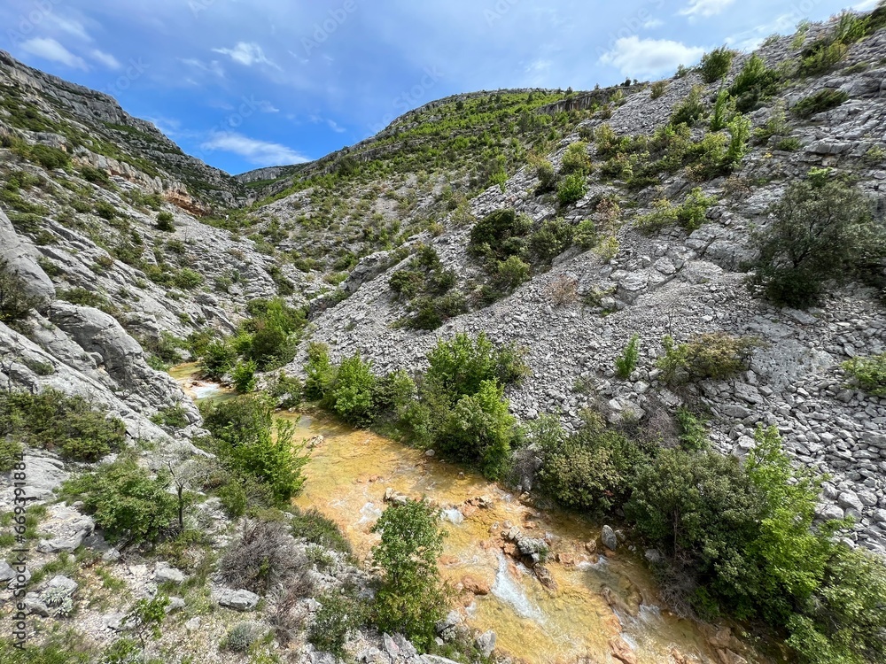 The river Bijela voda or Bijeli Stream in a rugged canyon at the foot of the Przun hill, Karin Gornji - Croatia (Rijeka Bijela voda ili Bijeli potok u krševitom kanjonu podno brda Pržun - Hrvatska)