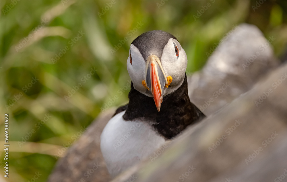 Atlantic puffin (Fratercula arctica), on the rock on the island of Runde (Norway).