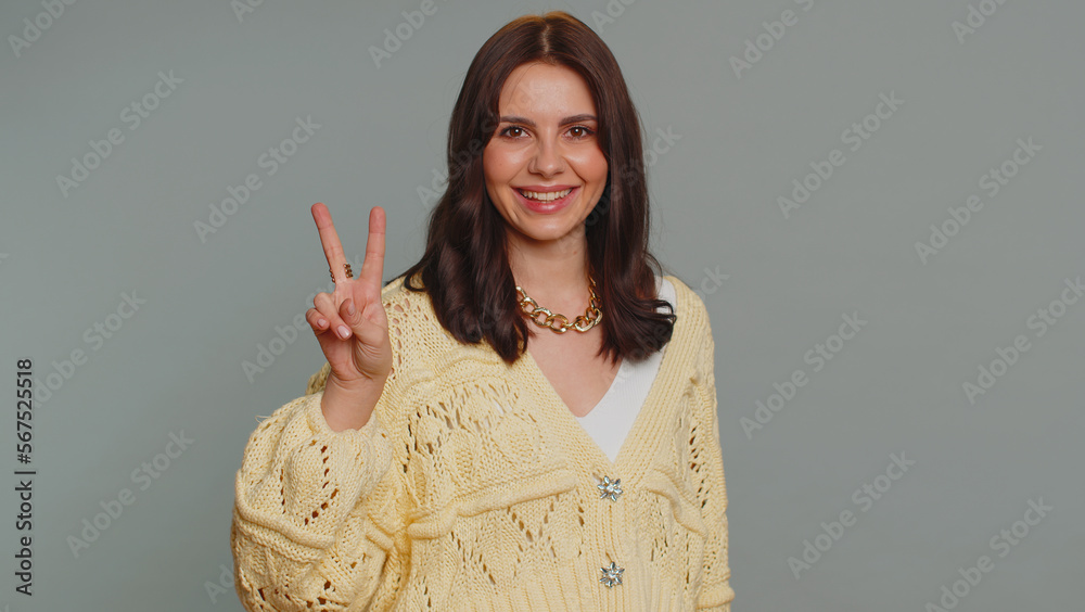 Gray knit jacket and female hands with autumn leaves closeup. Warm autumn and winter woolen clothes.