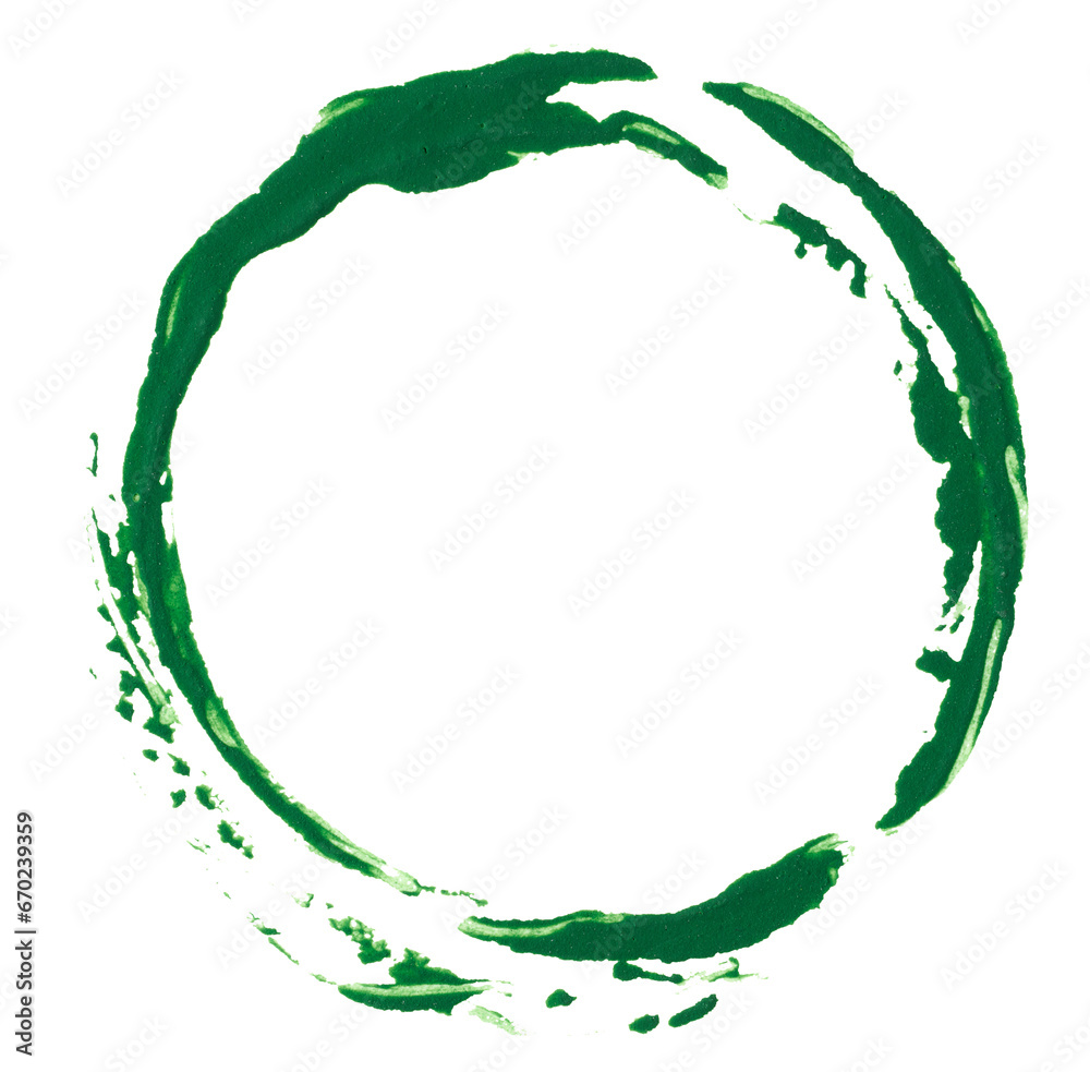 Round green paint imprint on white isolated background