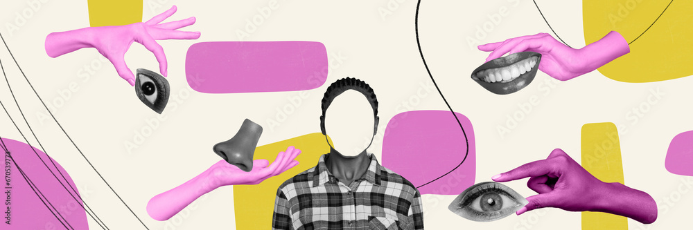 Exclusive magazine picture sketch collage image of arms completing face puzzle isolated creative background