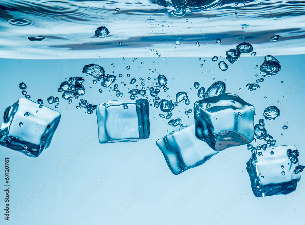 Ice cubes falling under water