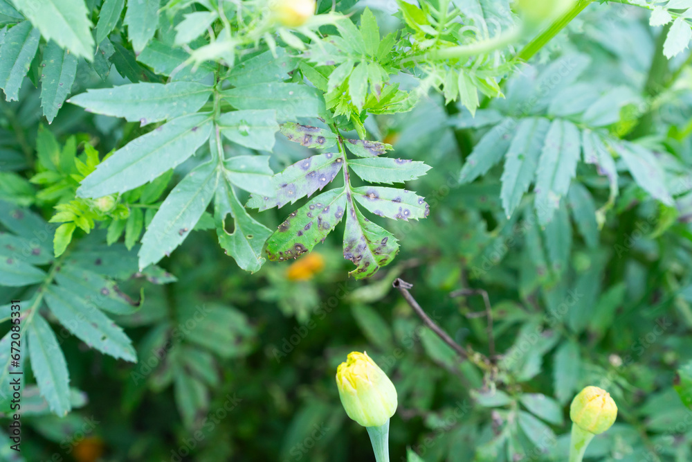 Fungal disease on the leaf of marigold
