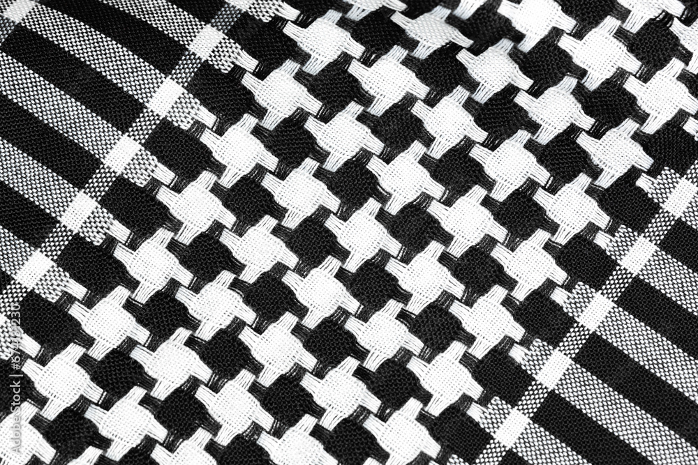 Keffiyeh, head covering patterns commonly used in the Middle East and the Arab World. A traditional head-tied garment is 'Keffiyeh' or 'Pushi'.