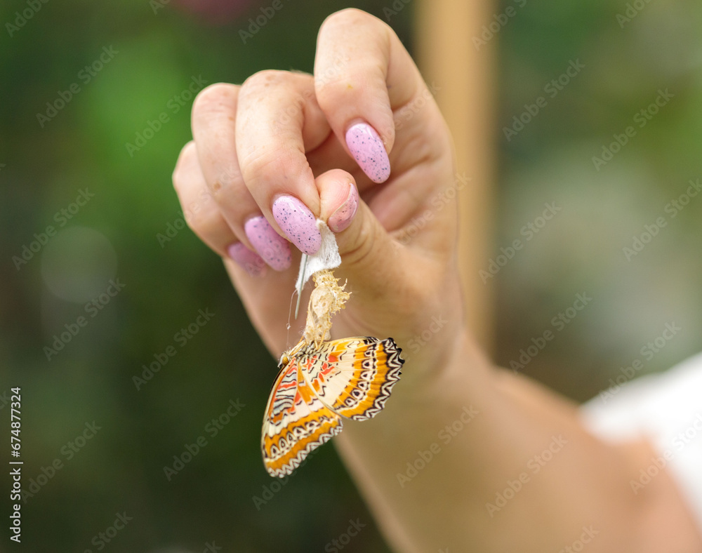 The butterfly hatches from the pupa. The process of the appearance of a new butterfly.