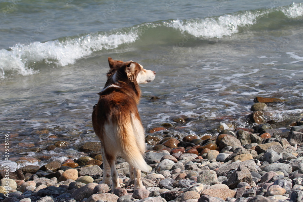 Husky am Strand der Ostsee