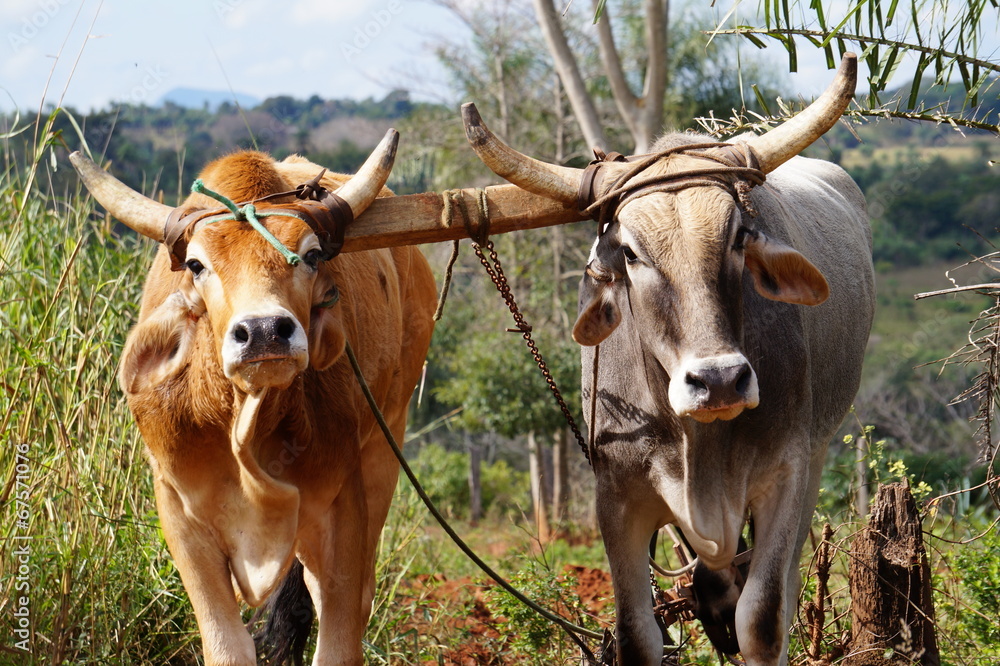 Ochsengespann beim Pflügen