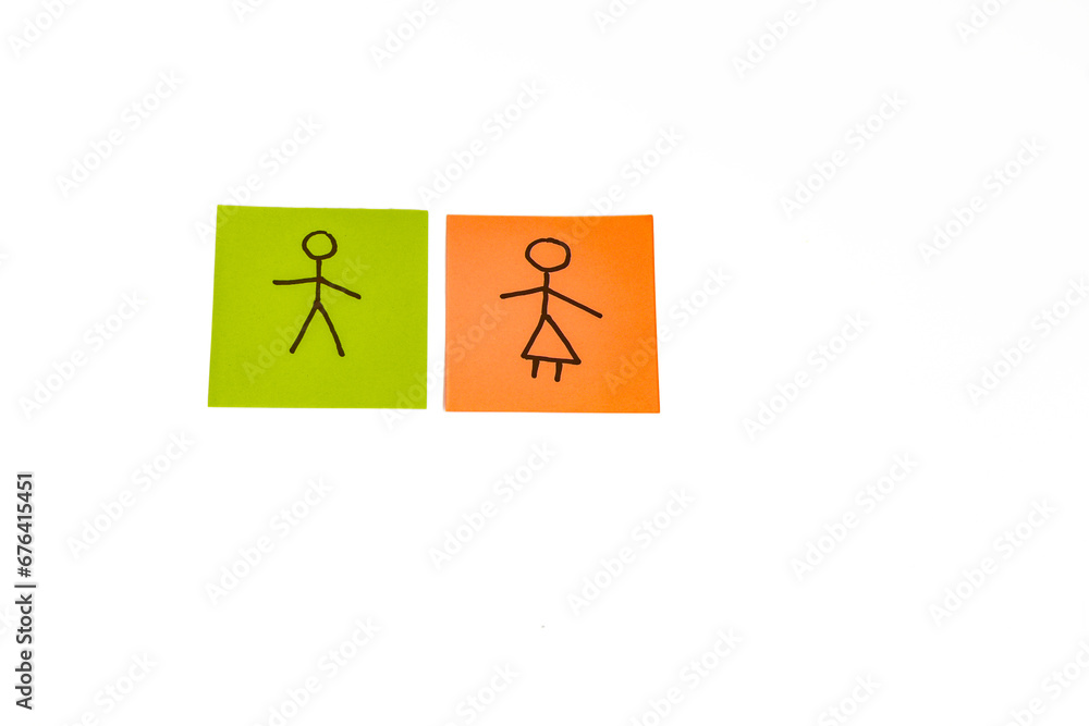 Man and woman sexual identity colorful cards with the marking of a woman and a man
