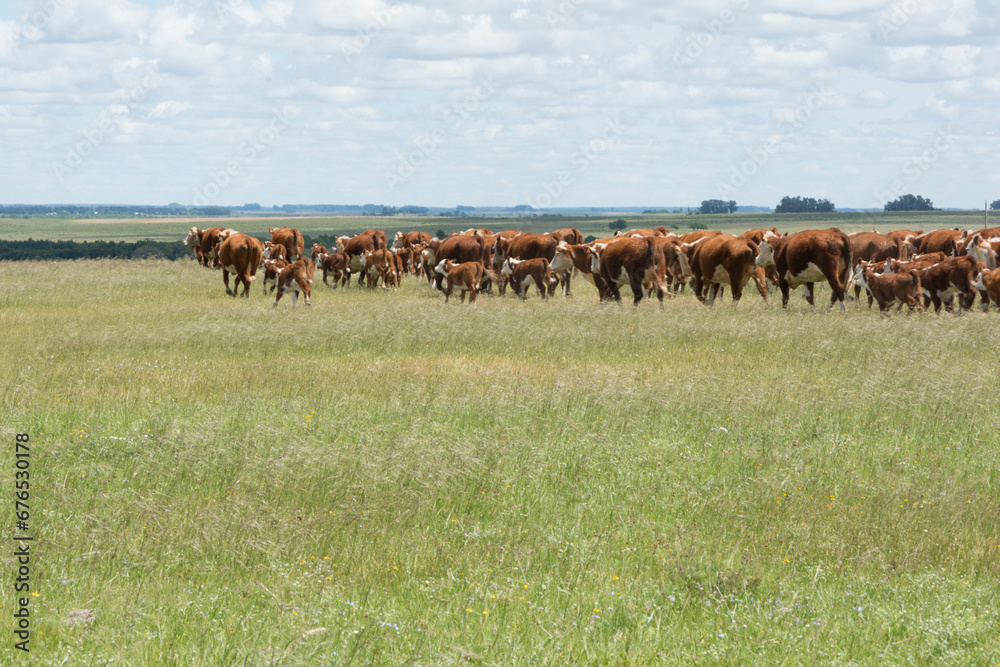 hereford cattle on pasture in the field