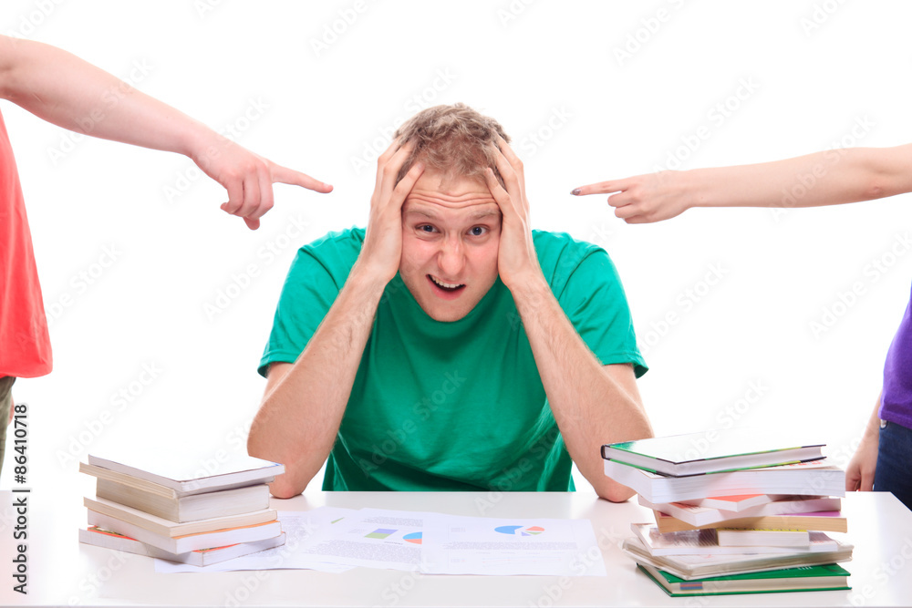 alcoholic Business man asleep drunk at desk with hangover