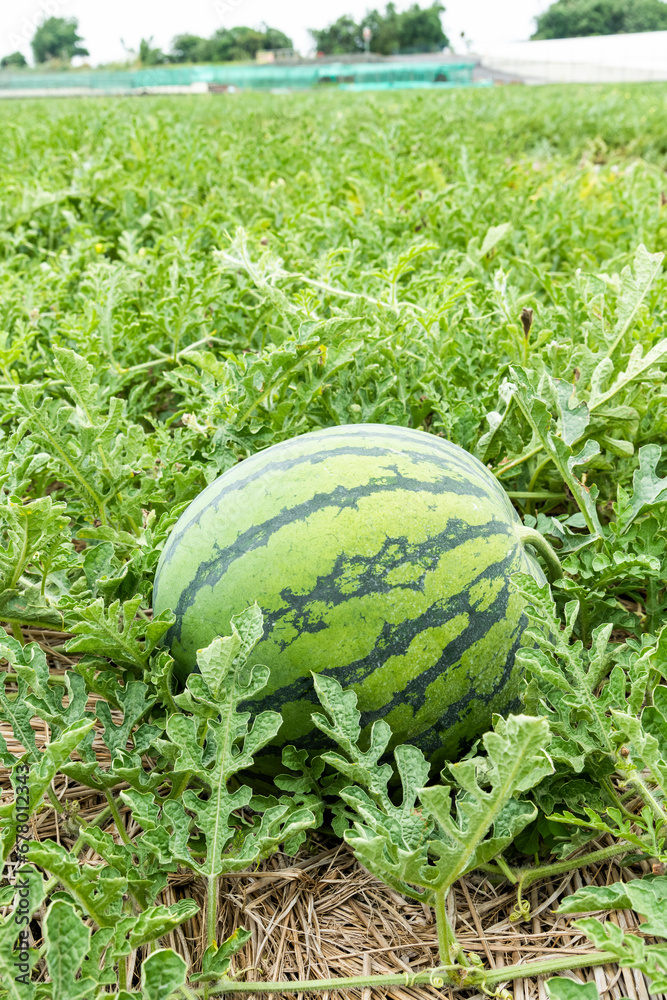 Close-up of watermelons growing in farmland in Yunlin, Taiwan.