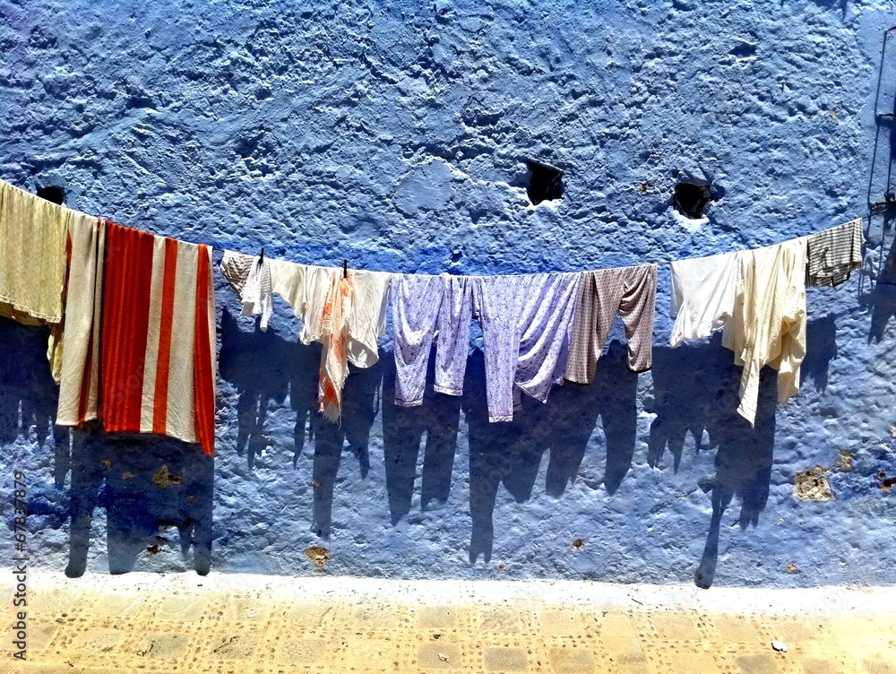 Tumble dry on the clothesline Chefchaouen, Morocco.