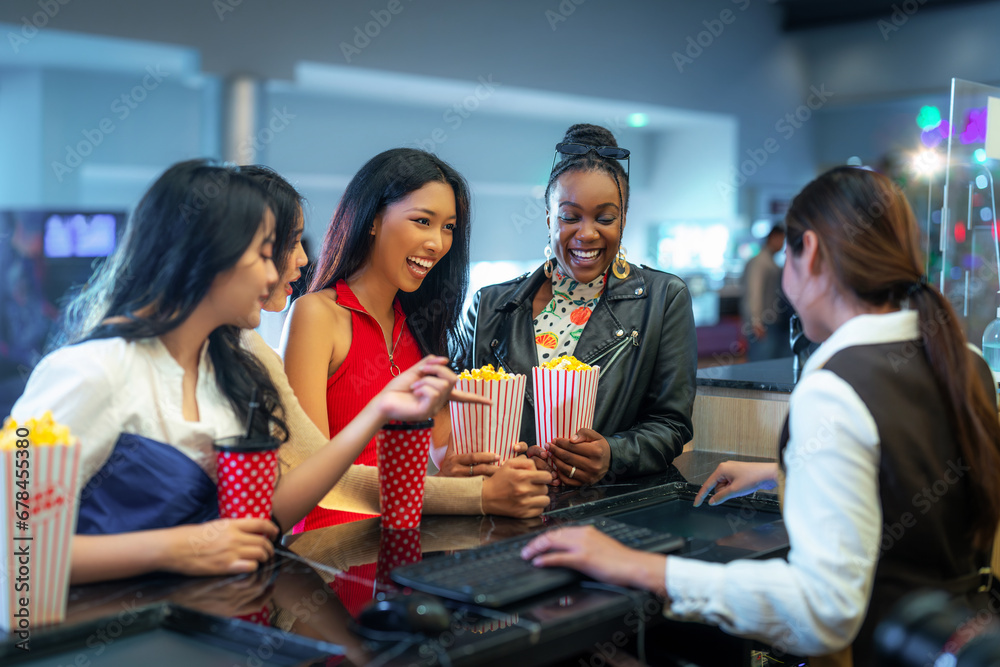Happy group of friends of asian woman relax and go to Cimema in movie theater together