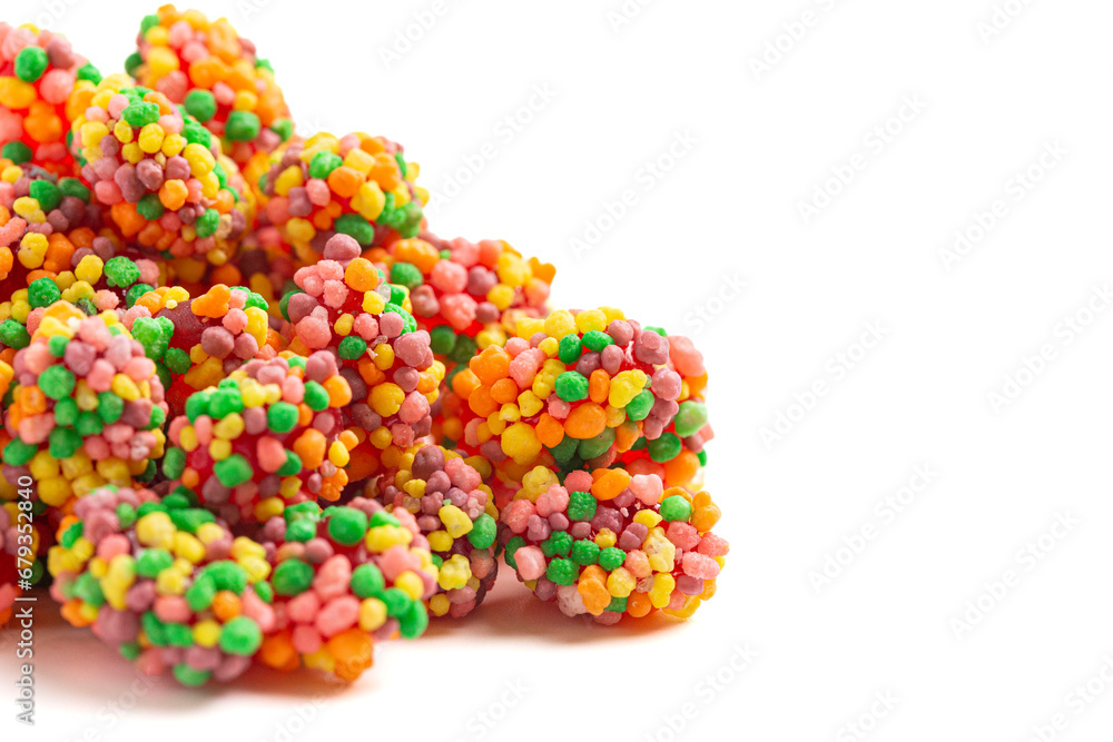 Sweet and Tangy Candy with Small Candies on the Outside of a Chewy Center Isolated on a White Background