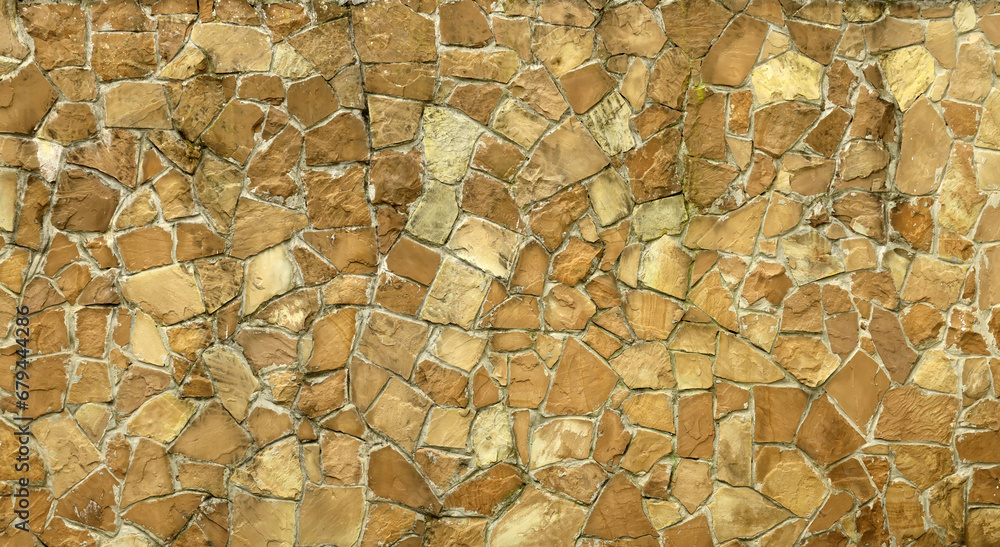 Very old brick stone wall of castle or fortress of 18th century. Full frame wall with obsolete dirty and cracked bricks close up
