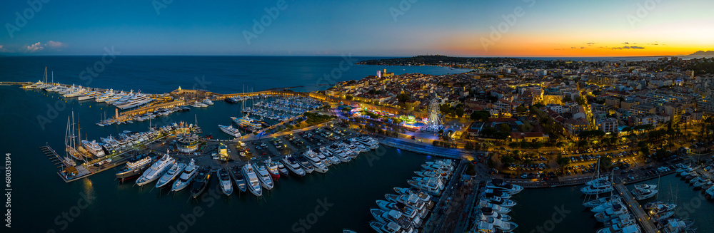 Sunset view of Antibes, a resort town between Cannes and Nice on the French Riviera