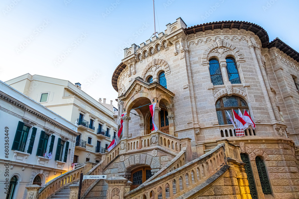 Sunset view of old city of Monaco, a sovereign city-state on the French Riviera, in Western Europe, on the Mediterranean Sea