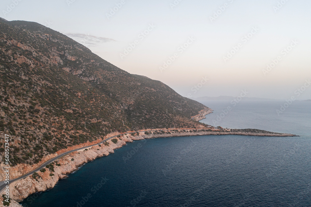 aerial top view The road around Kaputas beach on the high mountain winds along the beach and various viewpoints. The road is steep and sharp.good view on the road. relax in beautiful nature.