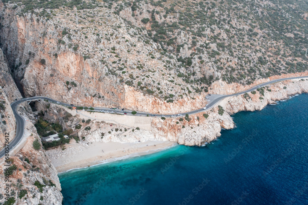 aerial top view The road around Kaputas beach on the high mountain winds along the beach and various viewpoints. The road is steep and sharp.good view on the road. relax in beautiful nature.