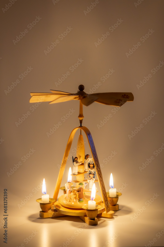 Weihnachtspyramide, Kerzen, Pyramide, Drehen, Flügel, Lichtgestellt, warmweiß, heimelig, Weihnachten, Advent, Licht, Lichtspiel