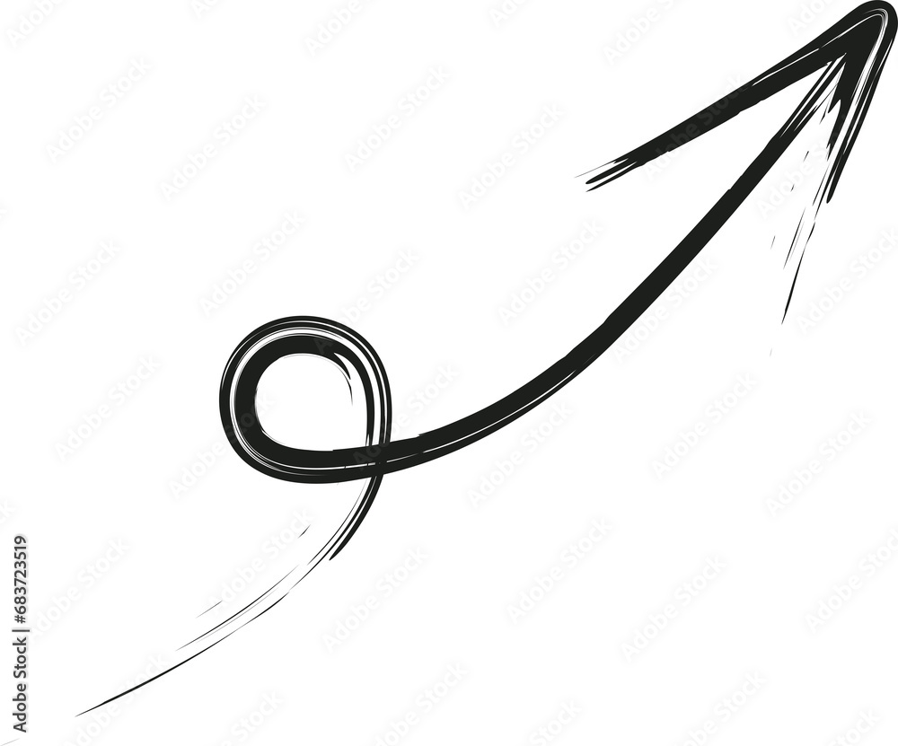 round curl with an arrow drawn with a brush with black ink, arrow curl by hand with a paint brush