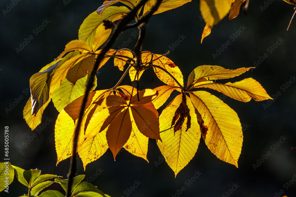 Kastanienblätter (Aesculus turbinata) im Gegenlicht
