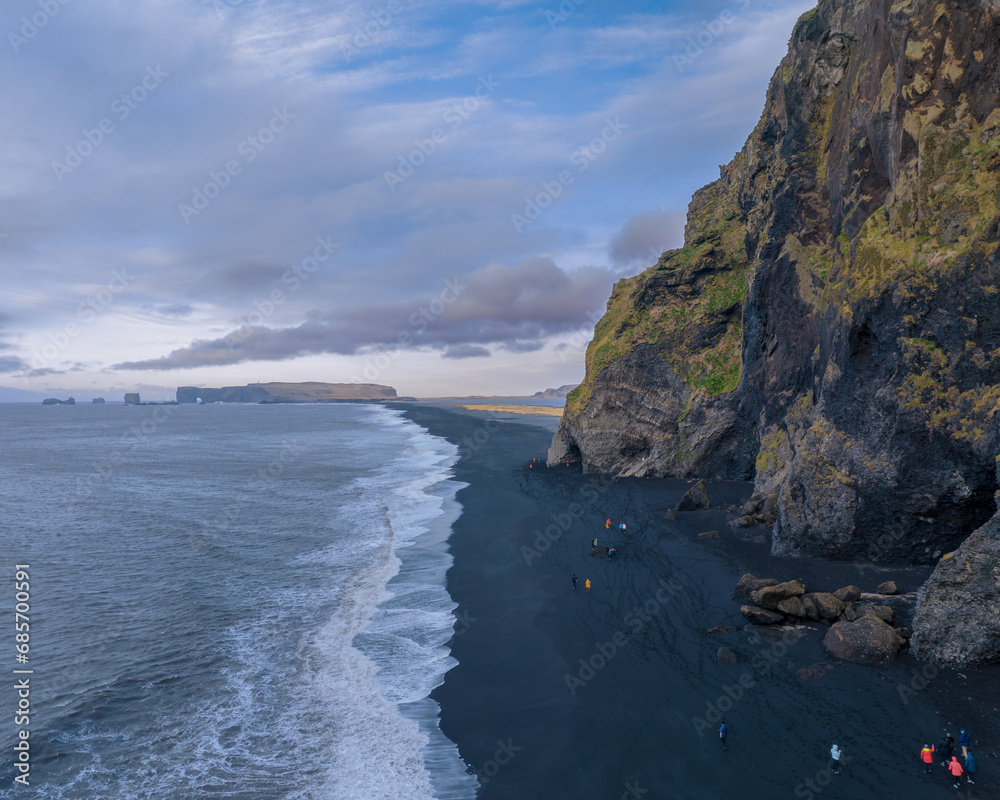 Iceland's Black Sand Beach at Sunrise. Vik, Iceland