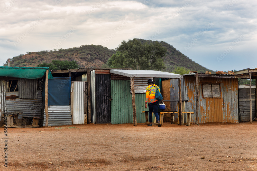 township informal settlement, shanty town made of corrugated iron sheets ,