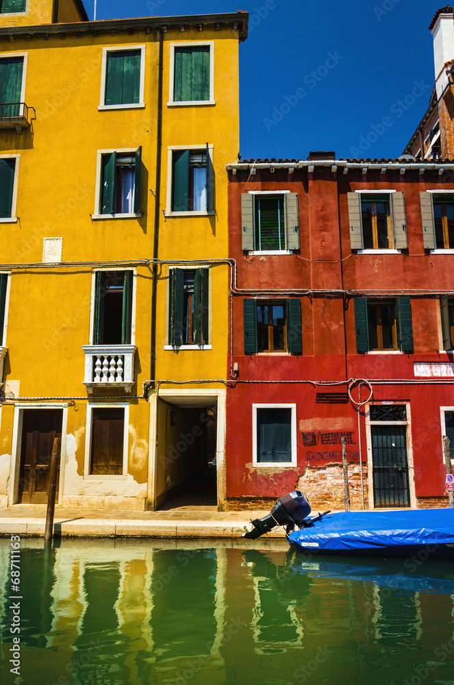 Beautiful scenery, colorful houses on the canal, Venice, Italy