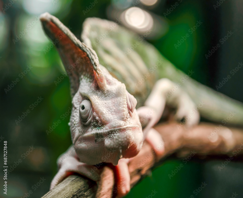 green chameleon on a branch