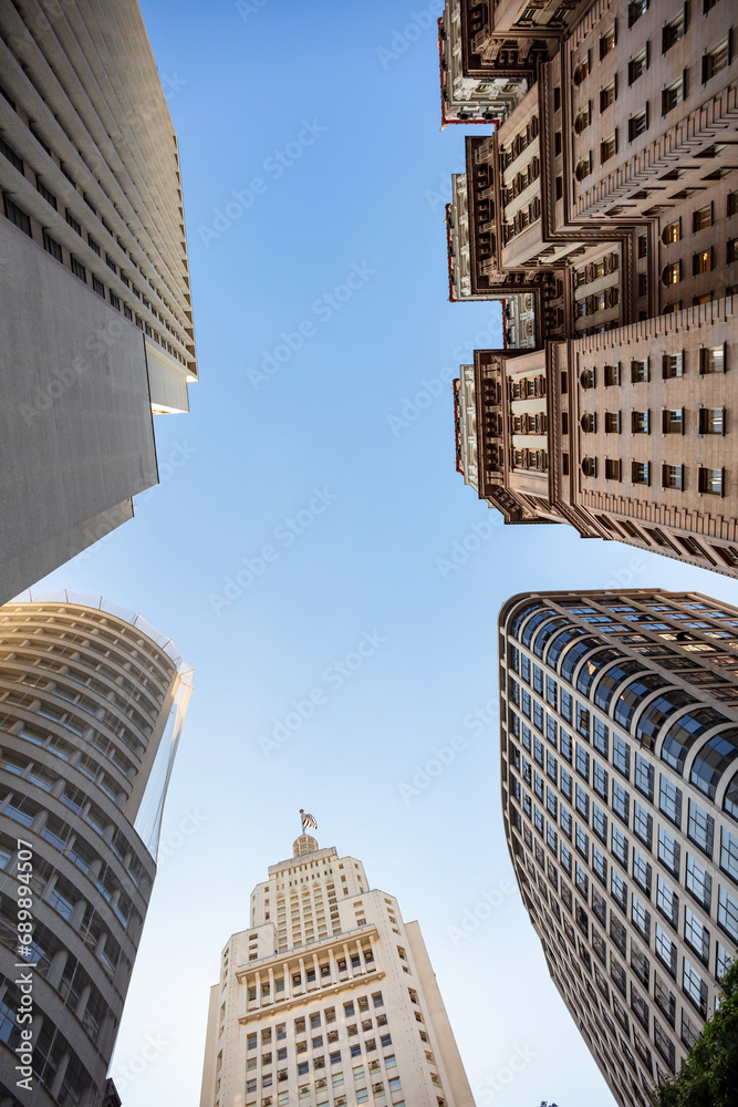 Bottom-up view of famous buildings in the historic center of São Paulo, Altino Arantes, Martinelli