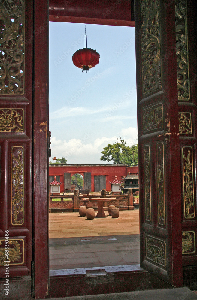 20o7: Fragment of a temple courtyard with sacrifice caldron and