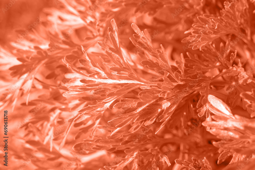 Medicinal plant wormwood bitter Artemisia vulgaris in peach fuzz color. 2024 color concept.