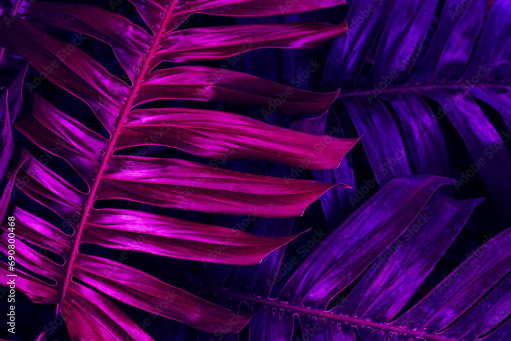 Vibrant Purple and Pink Monstera Leaves, Tropical Foliage in a Colorful Botanical Composition