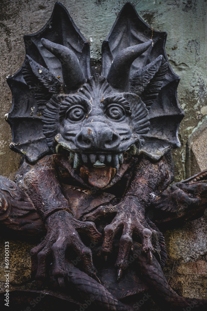 devil figure, bronze sculpture with demonic gargoyles and monste